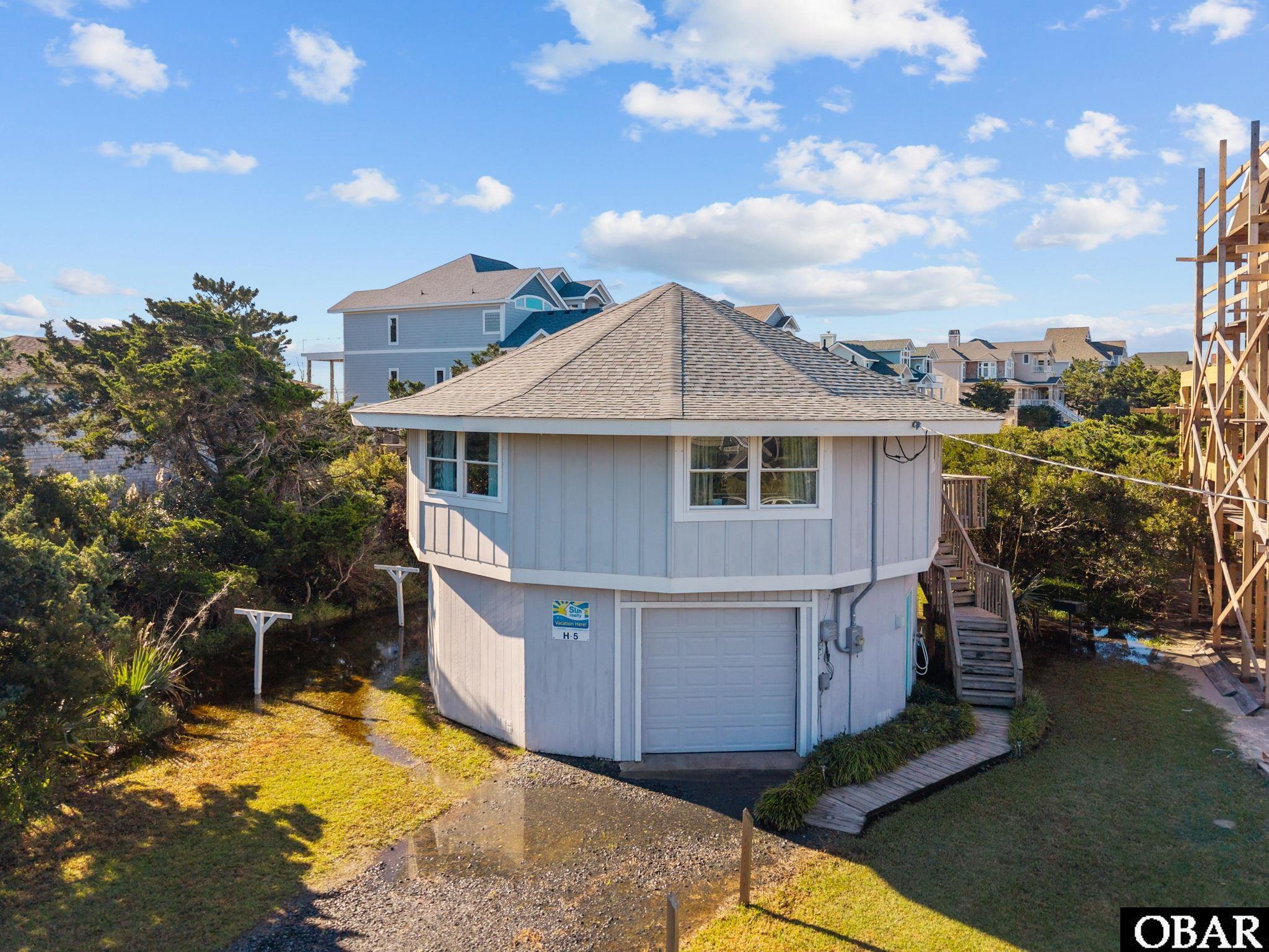 "When Pigs Fly" is a mere 200 feet from the ocean dunes. The world-class fishing nearby is a prized catch, and the local shops, restaurants, and dockside strolls offer a taste of seaside living. This uniquely designed cottage ensures every vacation is memorable. Bask in the sun on the deck or cool off in the outdoor shower after a day at the beach. Inside, the fun beach decor sets a lively scene. The small kitchen is well-appointed for culinary adventures. The living area, with its ample seating, is perfect for entertainment or relaxation. Rest comes easy with comfy beds in the king bedroom featuring a private half bath, as well as the queen bed and pyramid bunkbed room which are served by a convenient hall bath. While the garage remains private for owner use, the under-house laundry area offers additional storage space. Updates include a heat pump and updated electrical service in 2023, roof replacement in 2019, water heater in 2017, ANSI Storm Rated Replacement Windows in 2015, piling replacements and exterior/interior paint in 2012, all appliances since 2020 and new living room furniture in May of 2025.
